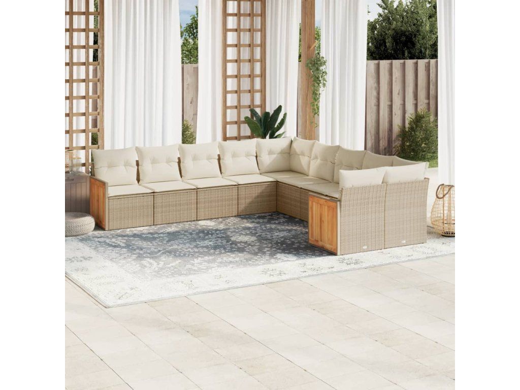 10dílná zahradní sedací souprava s poduškami béžová polyratan 3228032