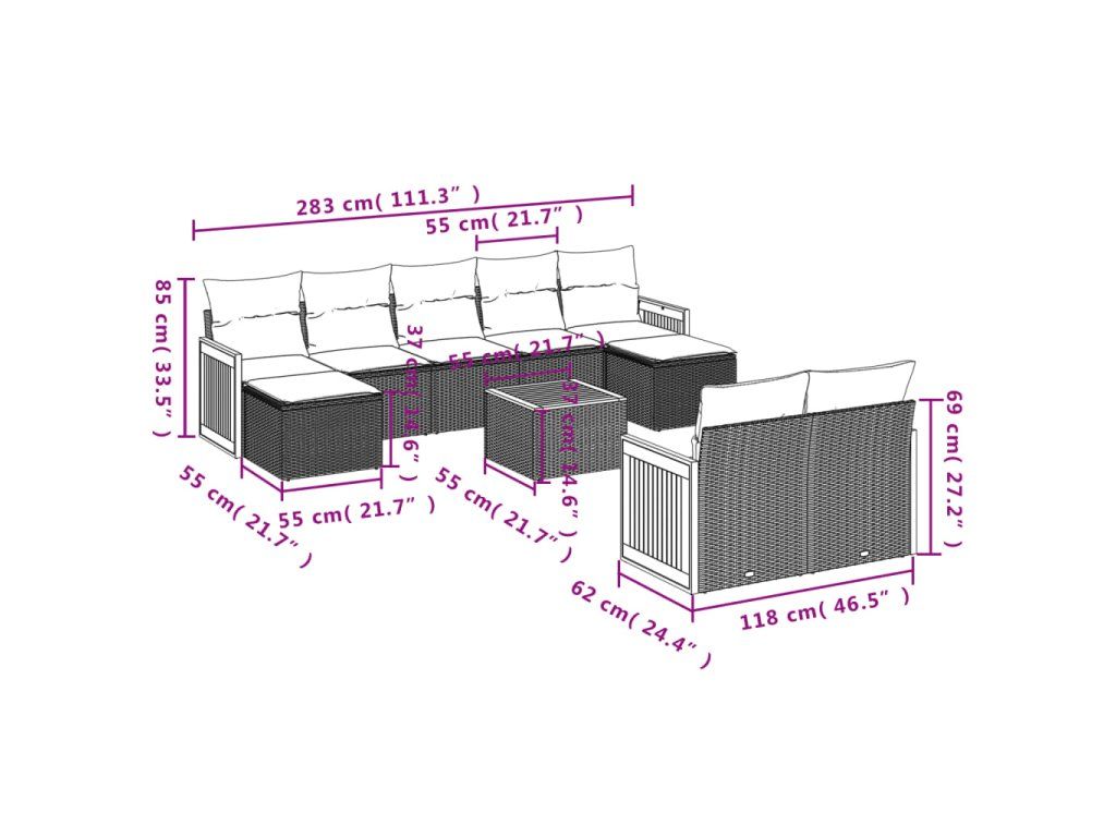 - Modulární design: Tato sada venkovního nábytku se vyznačuje modulární konstrukcí, je tedy zcela flexibilní a lze ji snadno přemisťovat, takže si můžete uspořádat venkovní nábytek dle vašich potřeb.