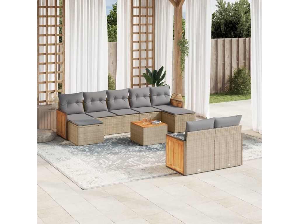 10dílná zahradní sedací souprava s poduškami béžová polyratan 3228089