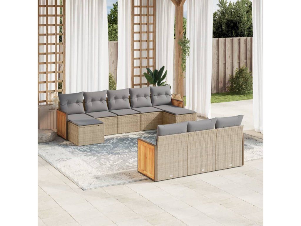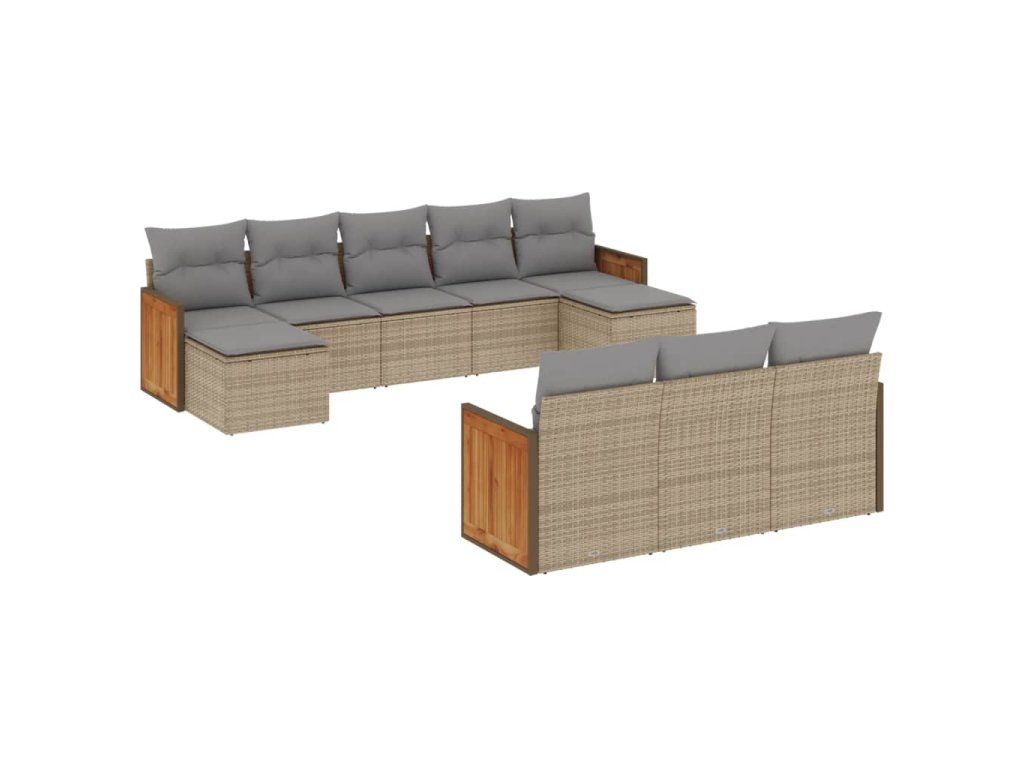 10dílná zahradní sedací souprava s poduškami béžová polyratan 3228096
