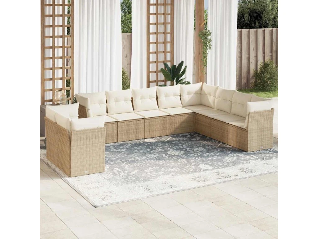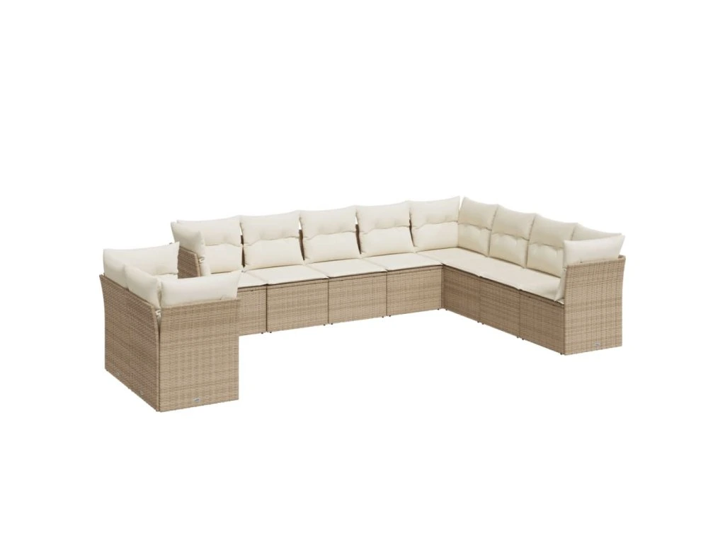 10dílná zahradní sedací souprava s poduškami béžová polyratan 3249697