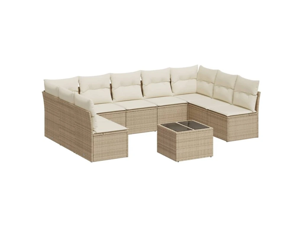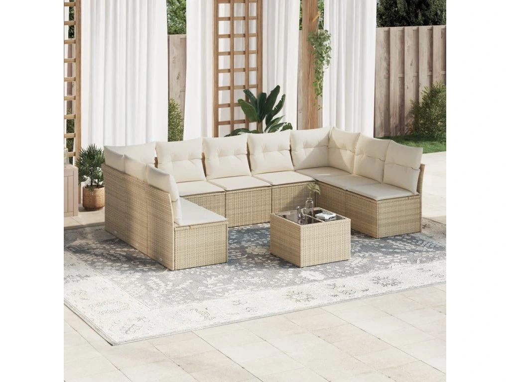 10dílná zahradní sedací souprava s poduškami béžová polyratan 3249917