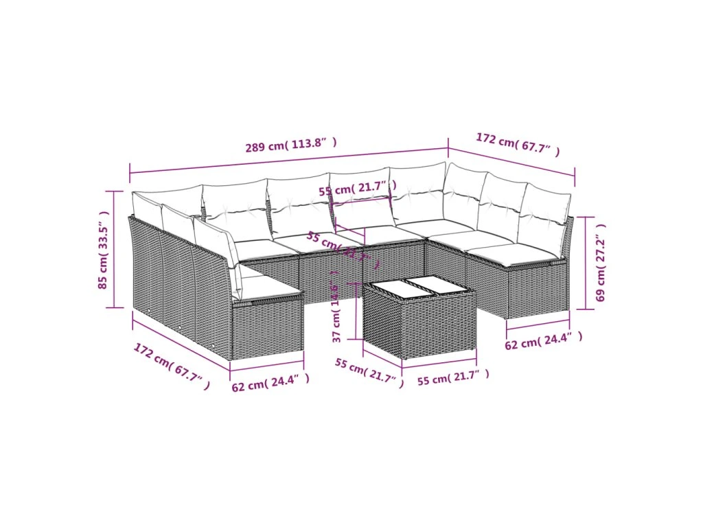 Tato zahradní sedací souprava je dokonalým doplňkem vaší zahrady, terasy nebo dvorku a poskytne vám pohodlné a příjemné místo, kde si můžete povídat s rodinou a přáteli nebo jen tak odpočívat a užívat si pobyt venku.