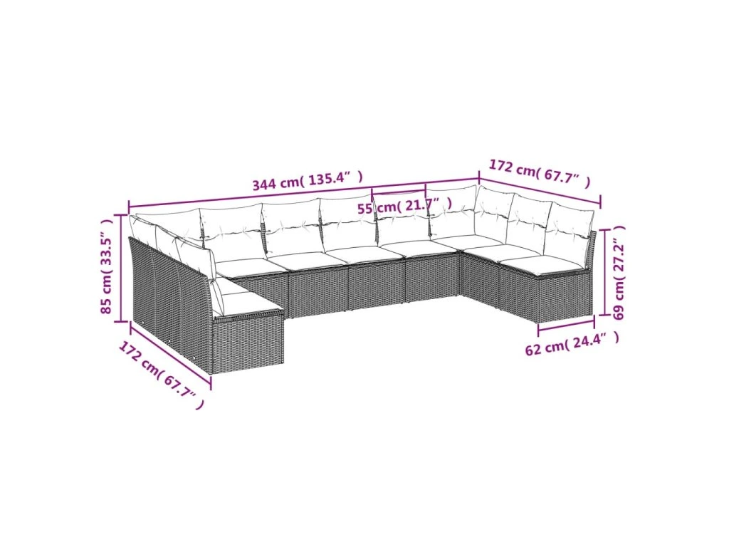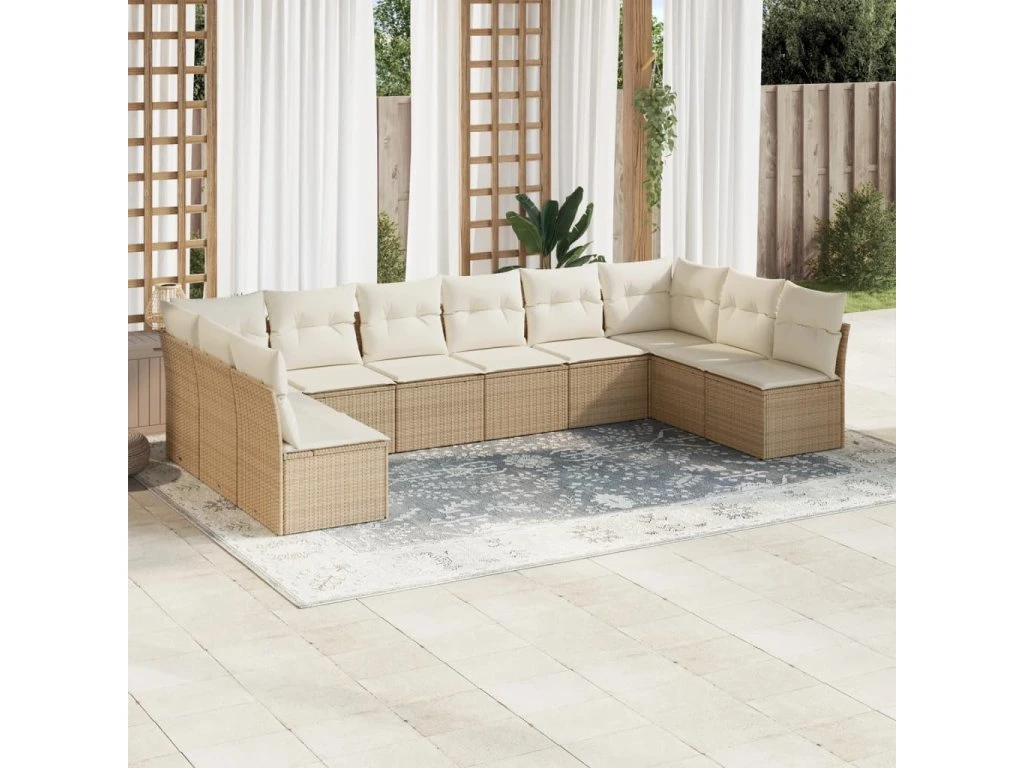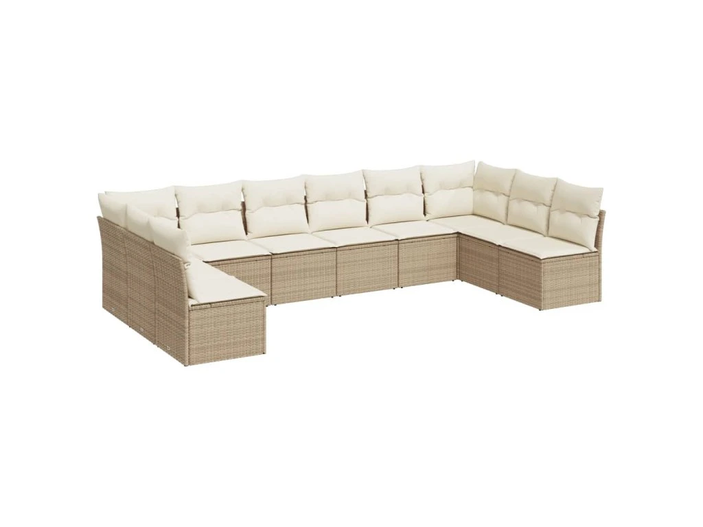 10dílná zahradní sedací souprava s poduškami béžová polyratan 3249927