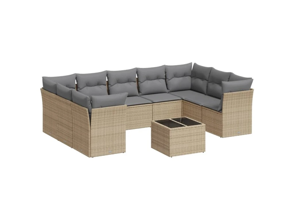 10dílná zahradní sedací souprava s poduškami béžová polyratan 3249978