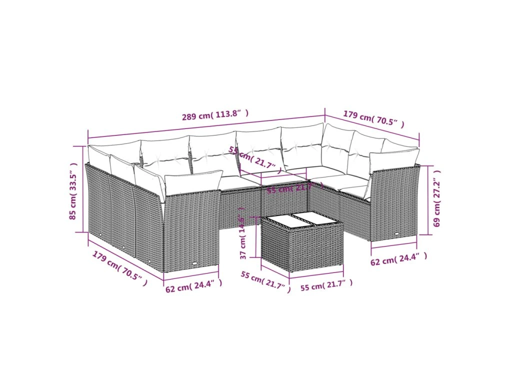Tato zahradní sedací souprava je dokonalým doplňkem vaší zahrady, terasy nebo dvorku a poskytne vám pohodlné a příjemné místo, kde si můžete povídat s rodinou a přáteli nebo jen tak odpočívat a užívat si pobyt venku.