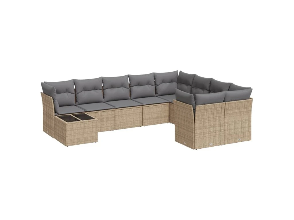 10dílná zahradní sedací souprava s poduškami béžová polyratan 3250028
