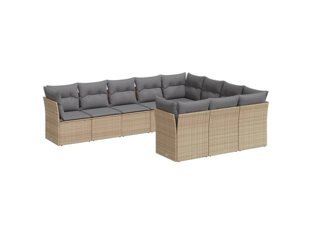 10dílná zahradní sedací souprava s poduškami béžová polyratan 3250058