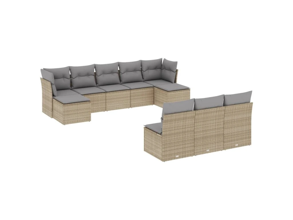 10dílná zahradní sedací souprava s poduškami béžová polyratan 3250128