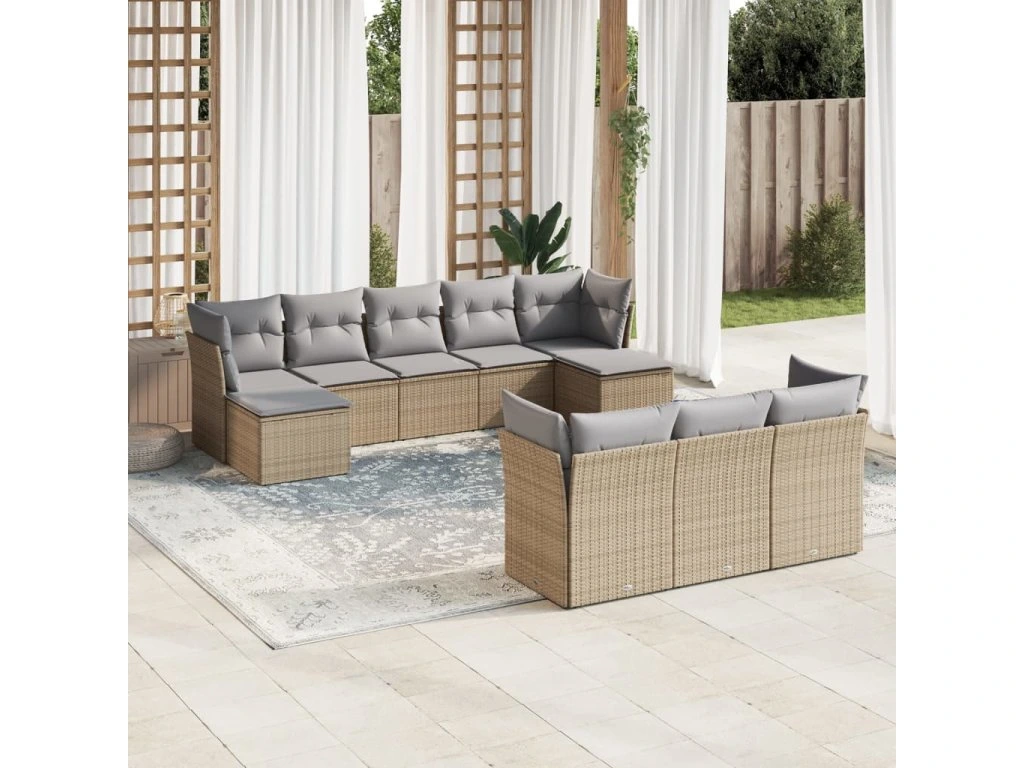 10dílná zahradní sedací souprava s poduškami béžová polyratan 3250168
