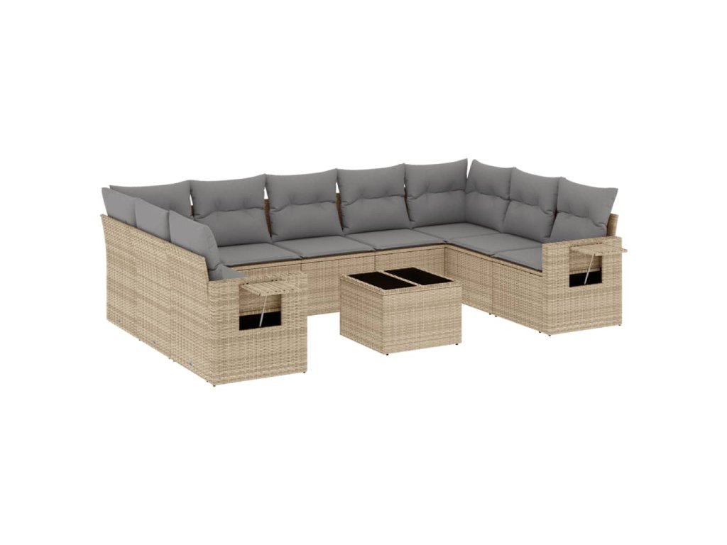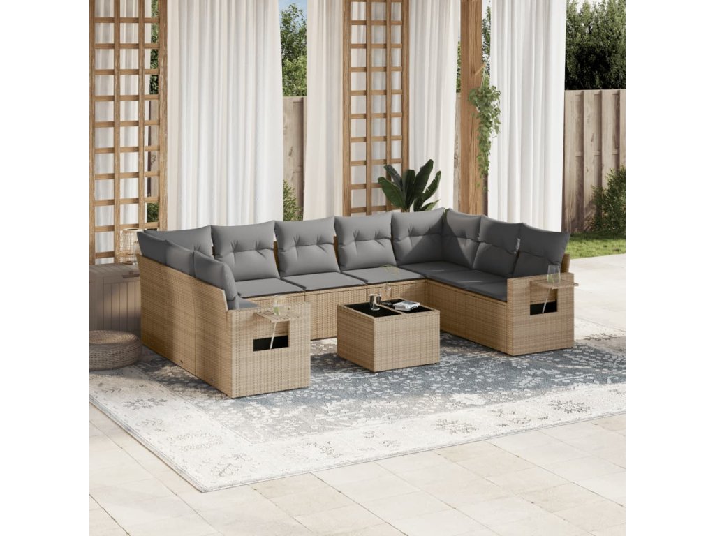10dílná zahradní sedací souprava s poduškami béžová polyratan 3252946
