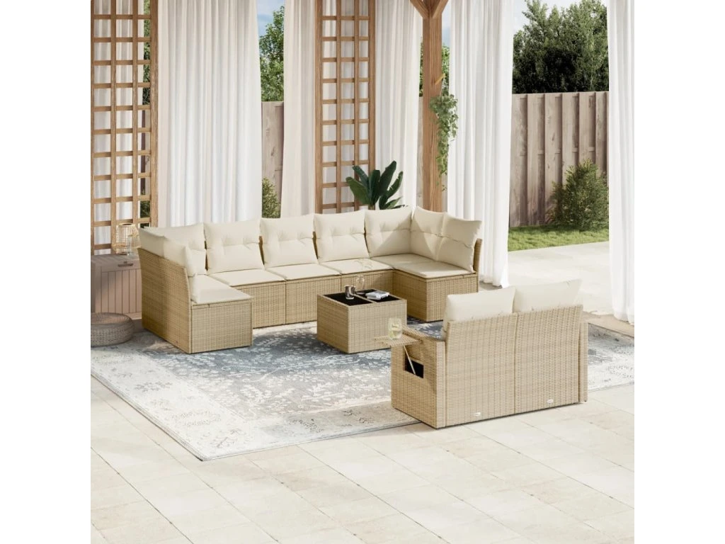 10dílná zahradní sedací souprava s poduškami béžová polyratan 3252965