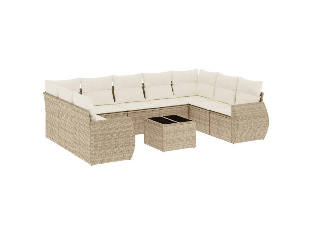 10dílná zahradní sedací souprava s poduškami béžová polyratan 3254145