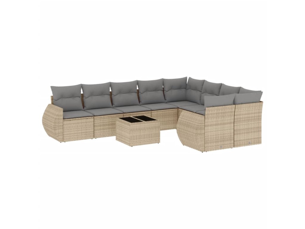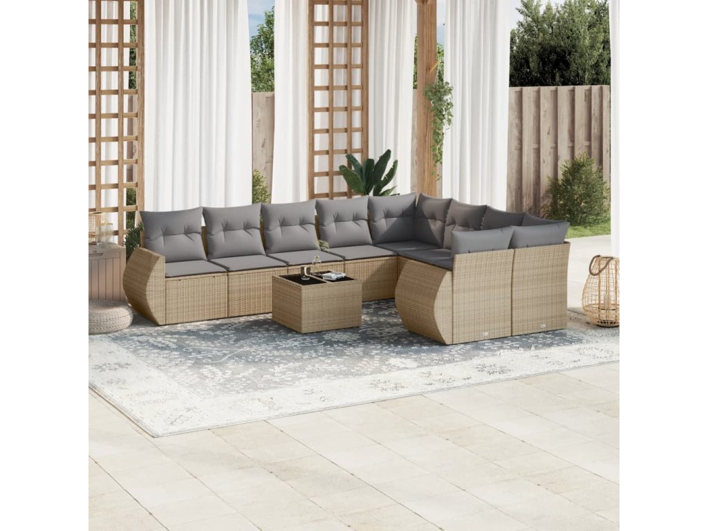 10dílná zahradní sedací souprava s poduškami béžová polyratan 3254186