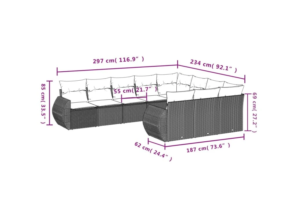 Tato zahradní sedací souprava je dokonalým doplňkem vaší zahrady, terasy nebo dvorku a poskytne vám pohodlné a příjemné místo, kde si můžete povídat s rodinou a přáteli nebo jen tak odpočívat a užívat si pobyt venku.