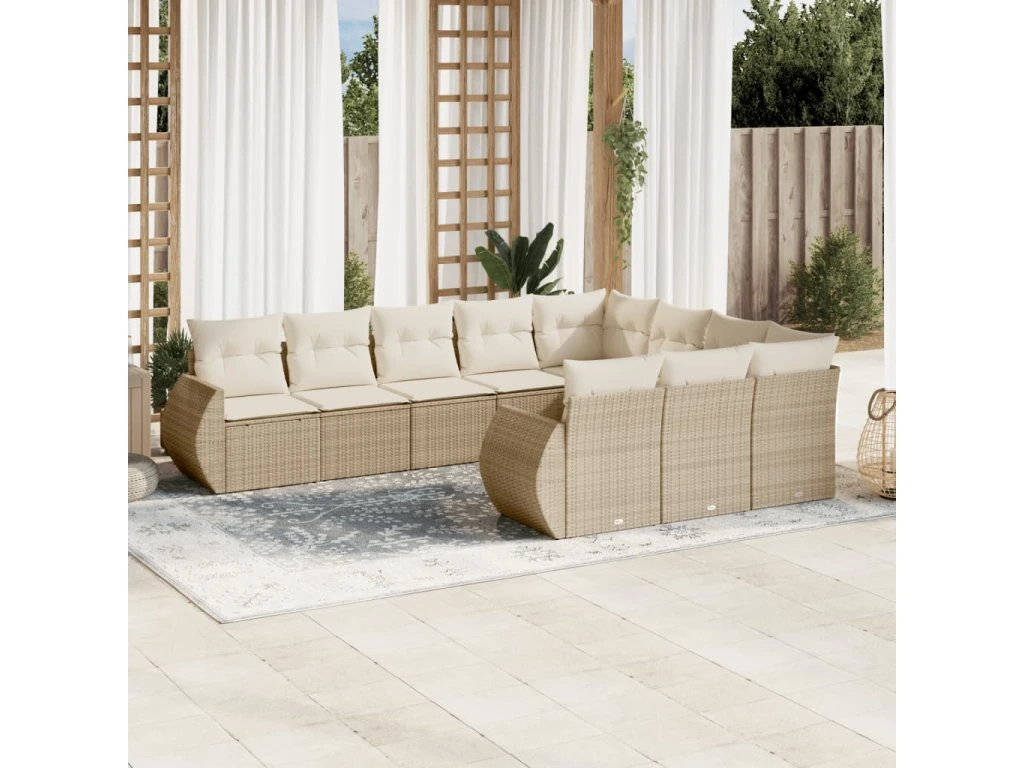 10dílná zahradní sedací souprava s poduškami béžová polyratan 3254225