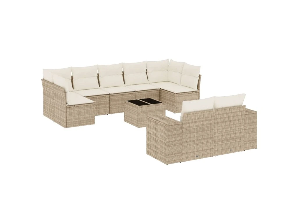 10dílná zahradní sedací souprava s poduškami béžová polyratan 3255365