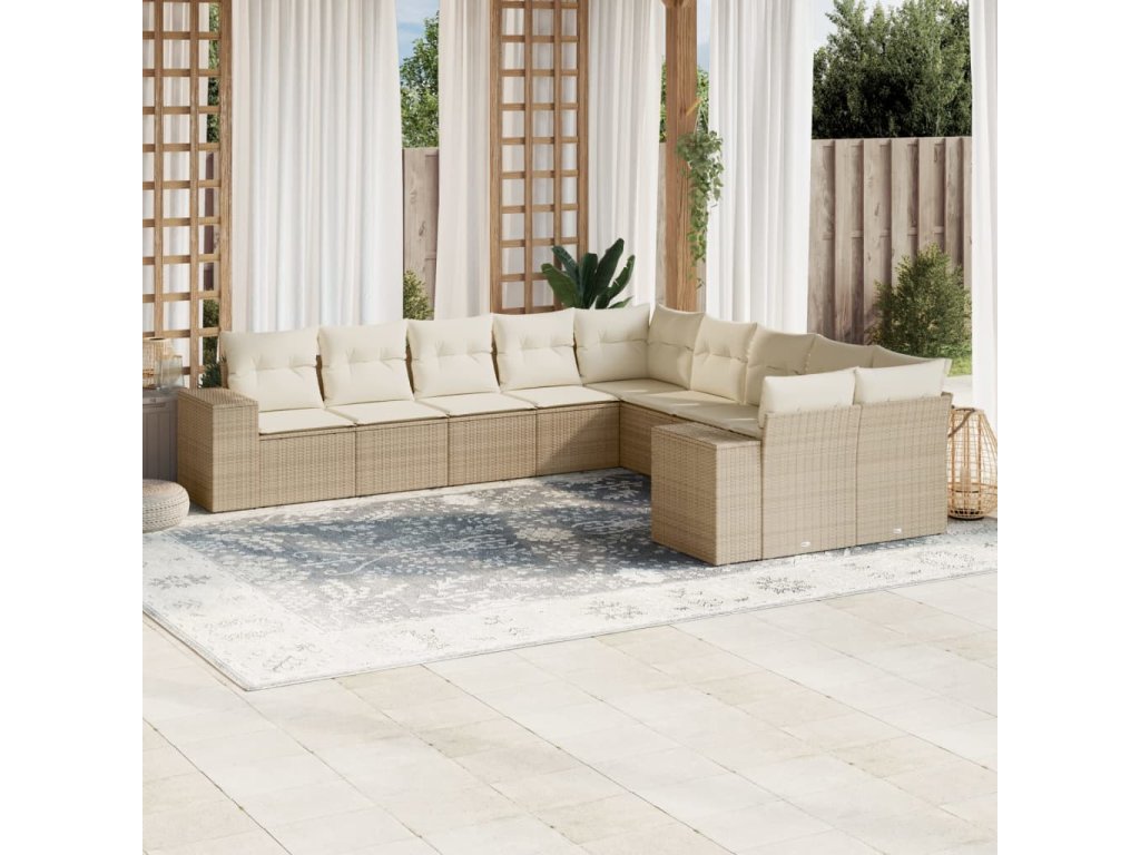10dílná zahradní sedací souprava s poduškami béžová polyratan 3255445