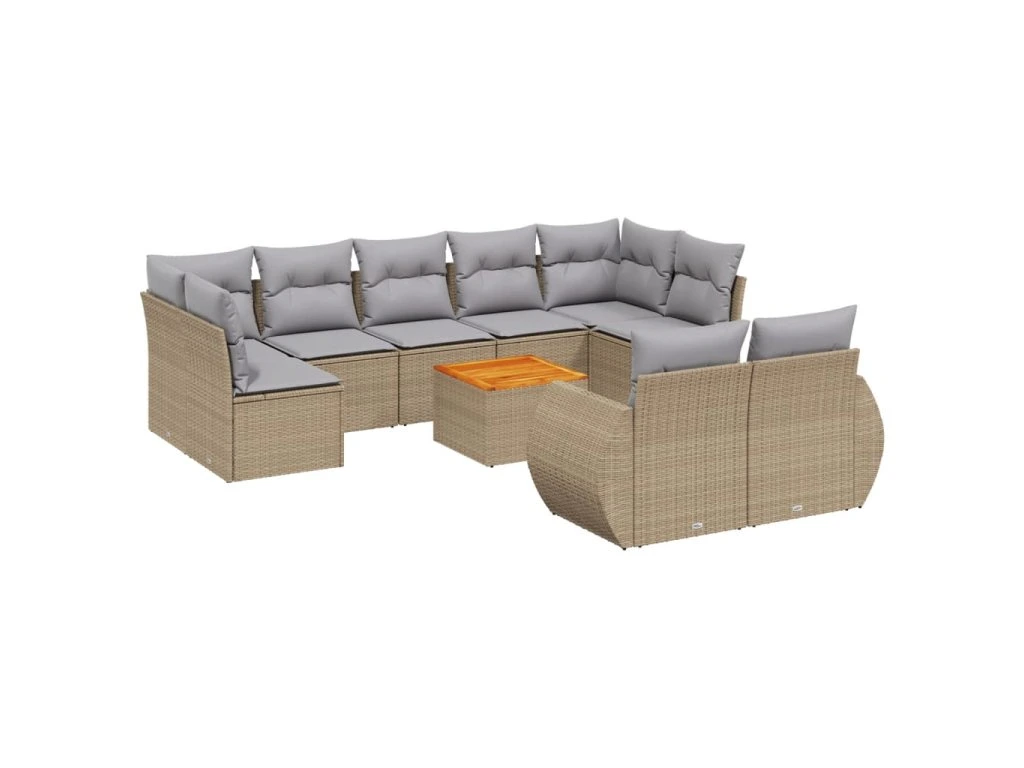 10dílná zahradní sedací souprava s poduškami béžová polyratan 3257487