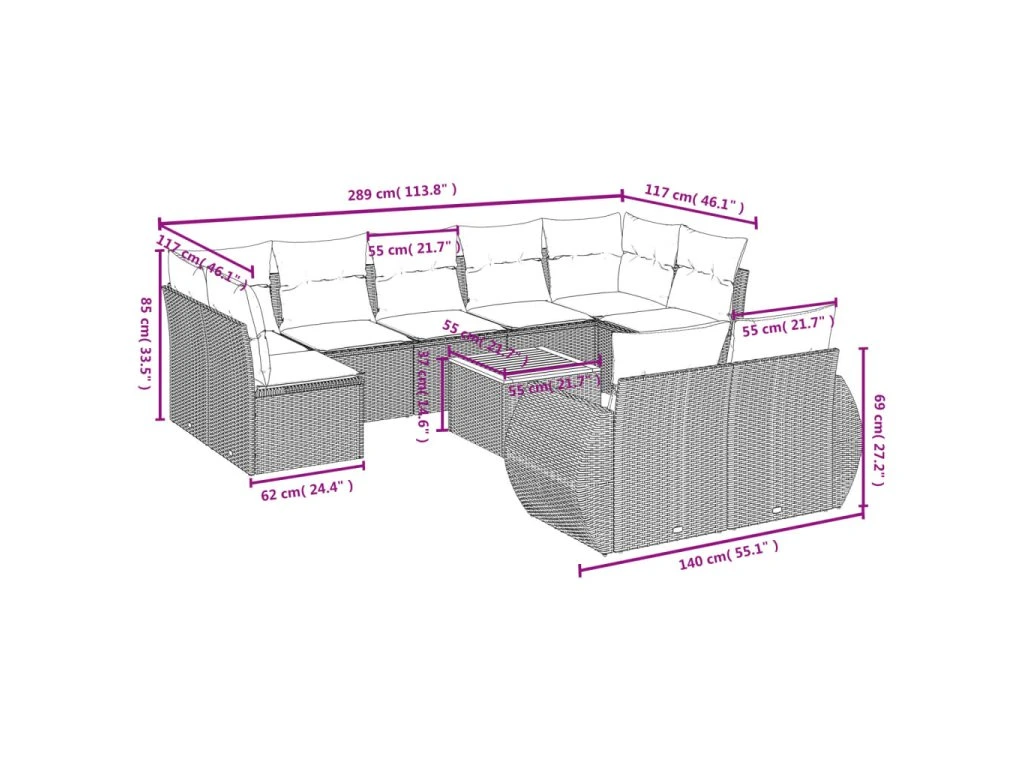 Tato zahradní sedací souprava je dokonalým doplňkem vaší zahrady, terasy nebo dvorku a poskytne vám pohodlné a příjemné místo, kde si můžete povídat s rodinou a přáteli nebo jen tak odpočívat a užívat si pobyt venku.