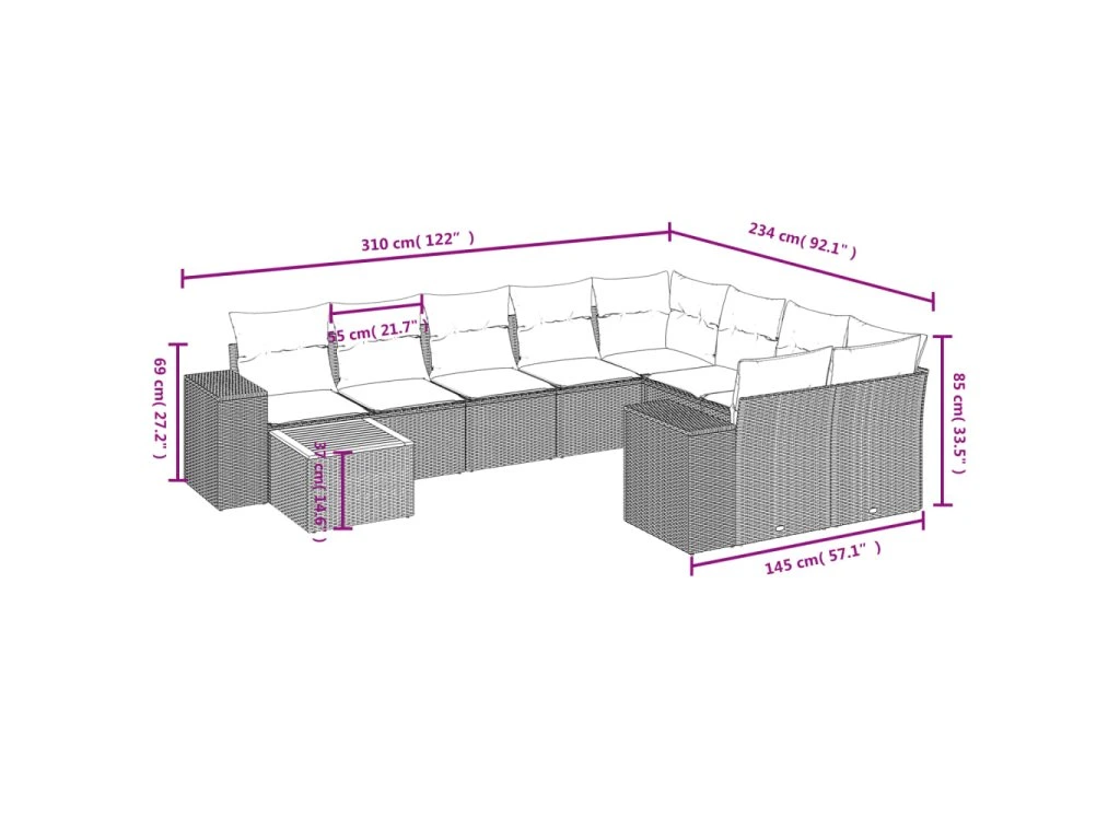 10dílná zahradní sedací souprava s poduškami béžová polyratan 3257942