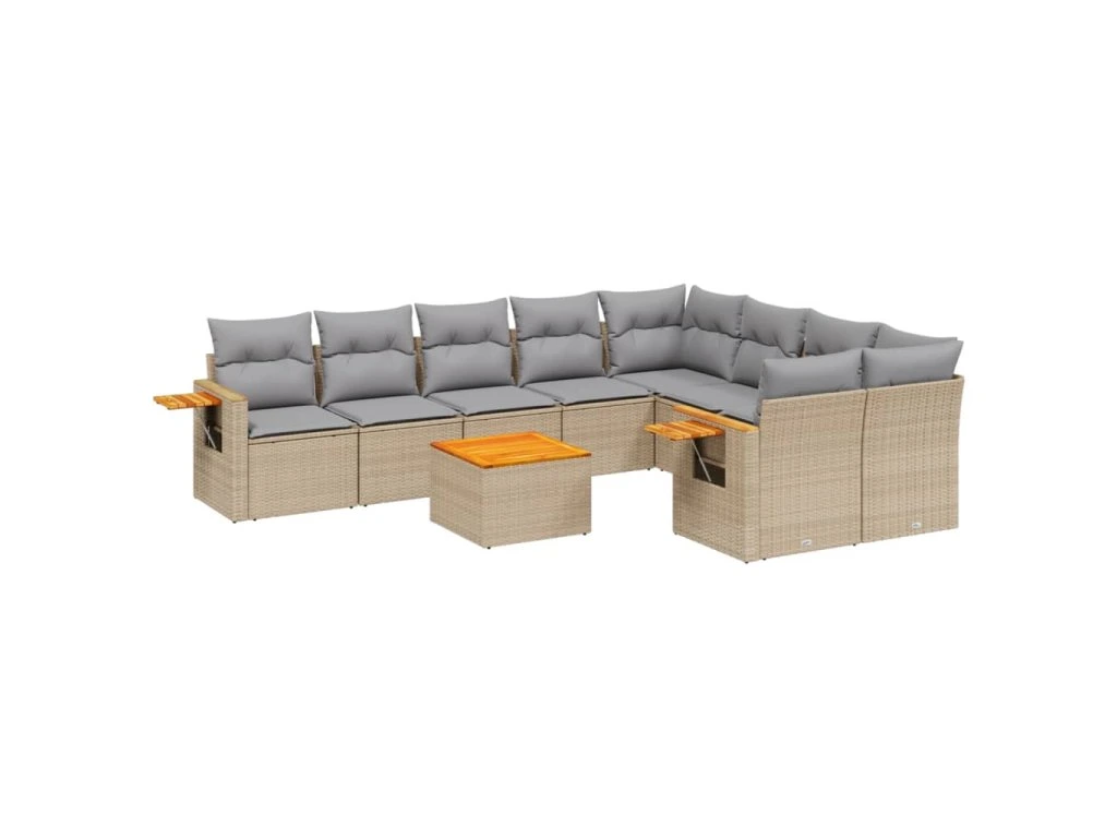 10dílná zahradní sedací souprava s poduškami béžová polyratan 3259553