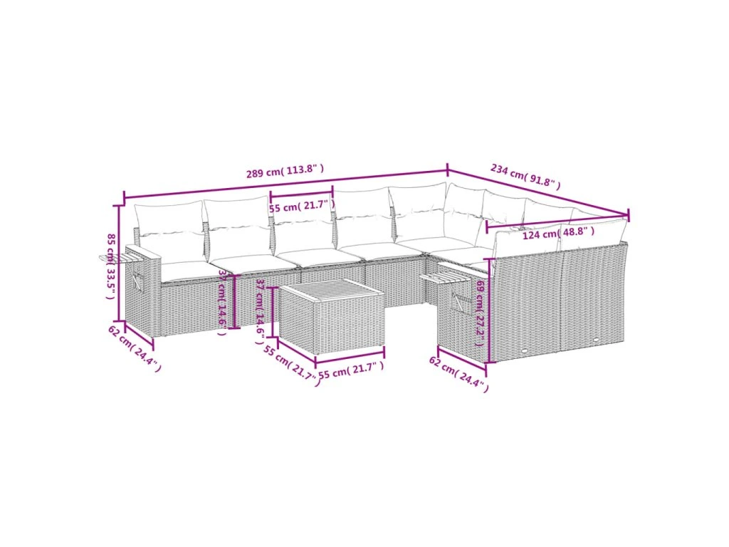 Tato zahradní sedací souprava je dokonalým doplňkem vaší zahrady, terasy nebo dvorku a poskytne vám pohodlné a příjemné místo, kde si můžete povídat s rodinou a přáteli nebo jen tak odpočívat a užívat si pobyt venku.