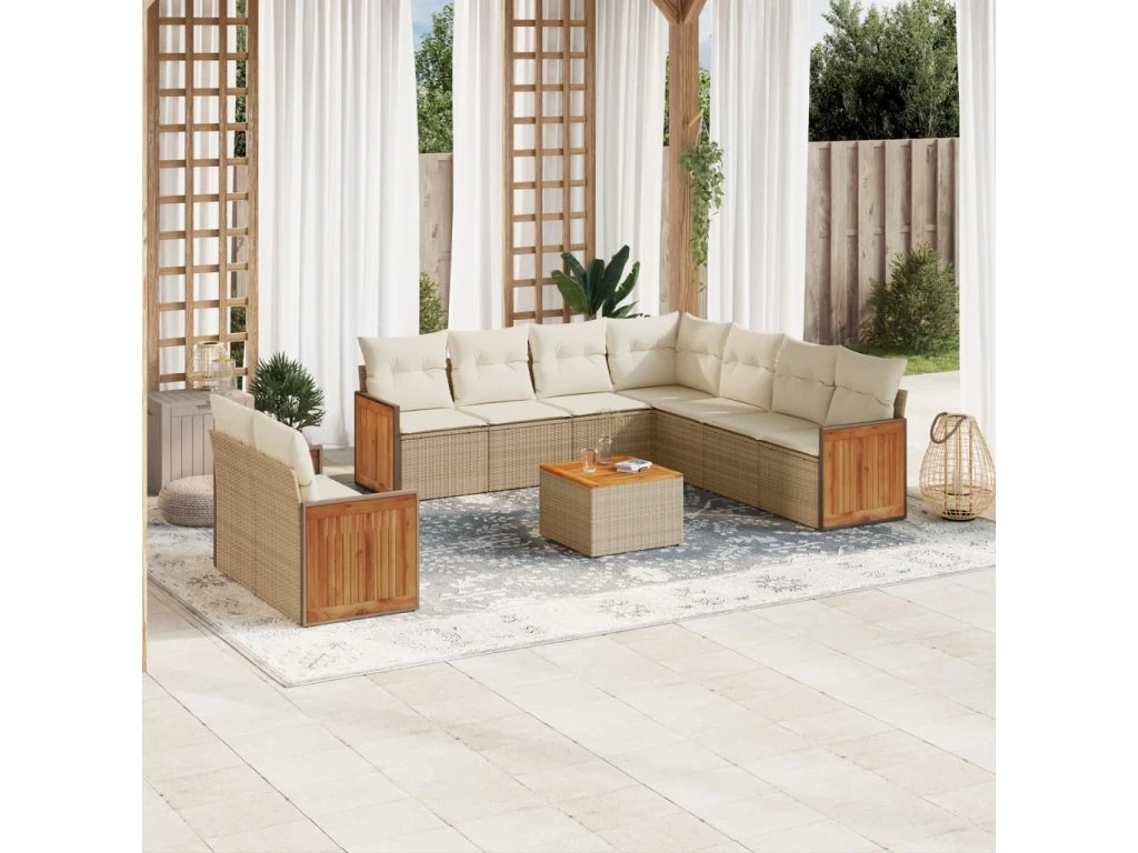 10dílná zahradní sedací souprava s poduškami béžová polyratan 3260189