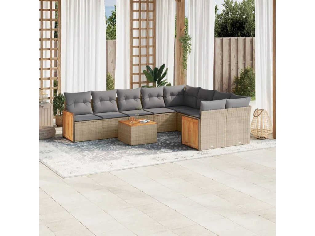 10dílná zahradní sedací souprava s poduškami béžová polyratan 3260393