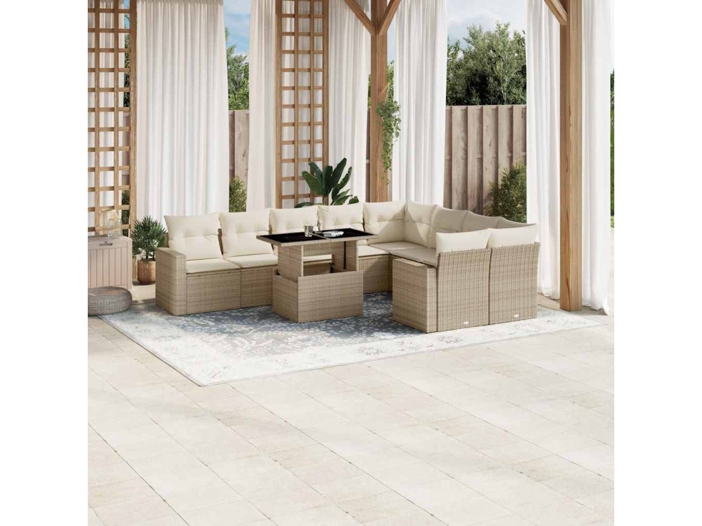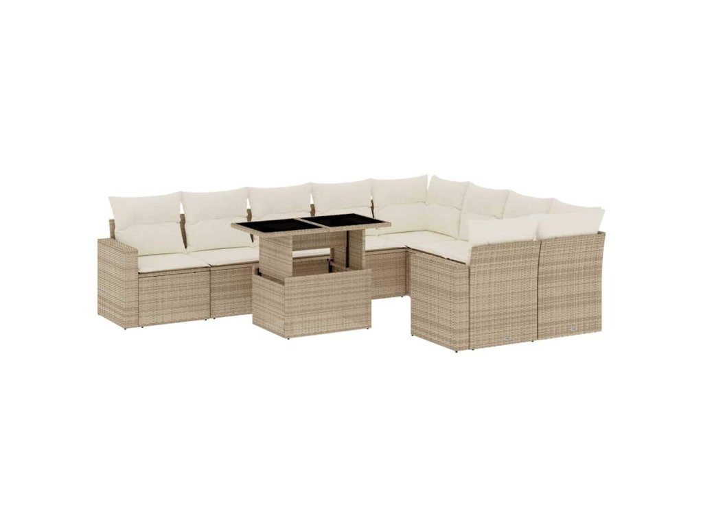 10dílná zahradní sedací souprava s poduškami béžová polyratan 3267498