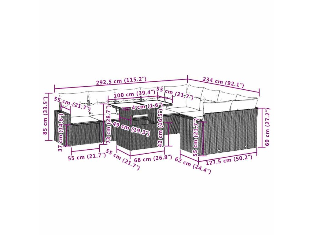 Tato zahradní sedací souprava je dokonalým doplňkem vaší zahrady, terasy nebo dvorku a poskytne vám pohodlné a příjemné místo, kde si můžete povídat s rodinou a přáteli nebo jen tak odpočívat a užívat si pobyt venku.