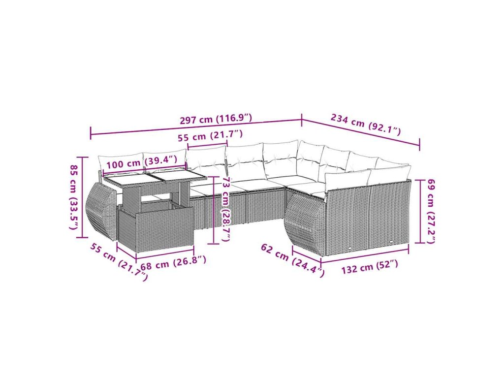 10dílná zahradní sedací souprava s poduškami béžová polyratan 3268768