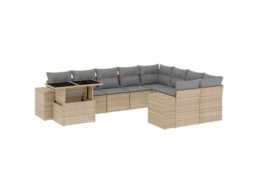 10dílná zahradní sedací souprava s poduškami béžová polyratan 3269399
