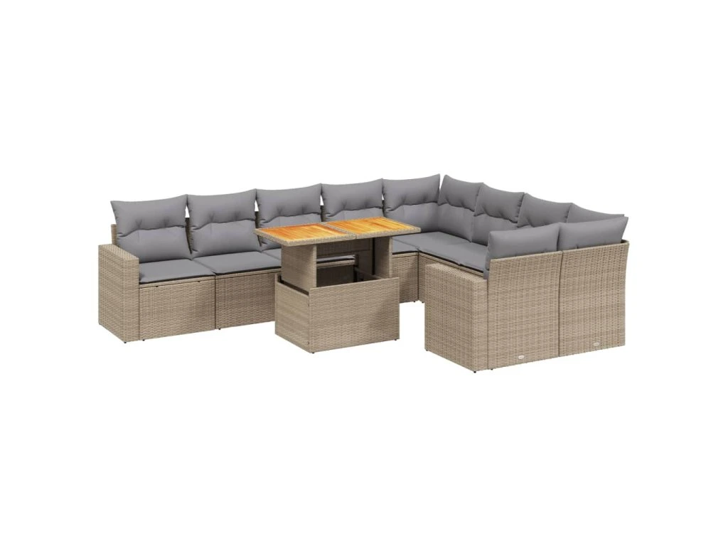 10dílná zahradní sedací souprava s poduškami béžová polyratan 3271472