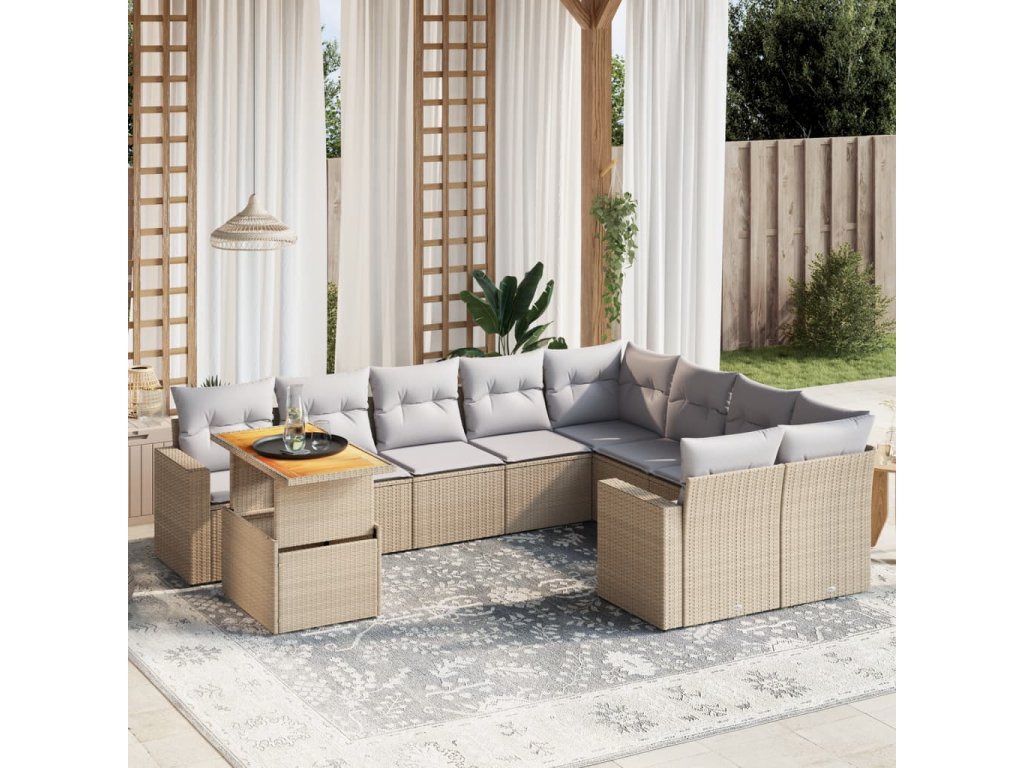10dílná zahradní sedací souprava s poduškami béžová polyratan 3271479