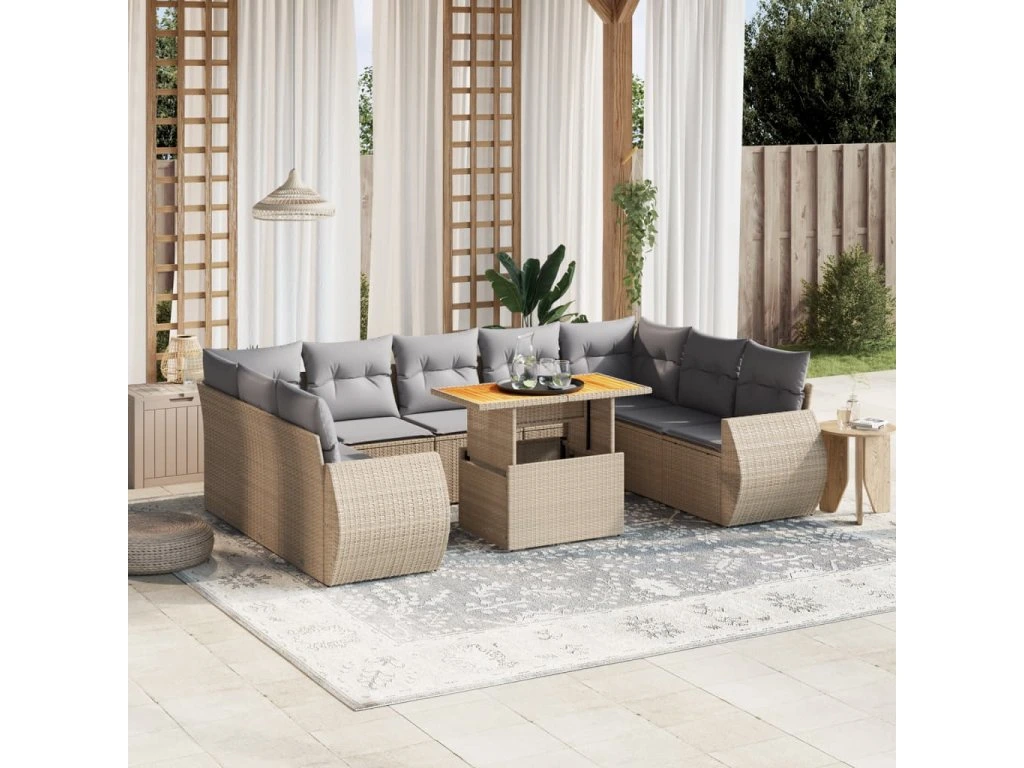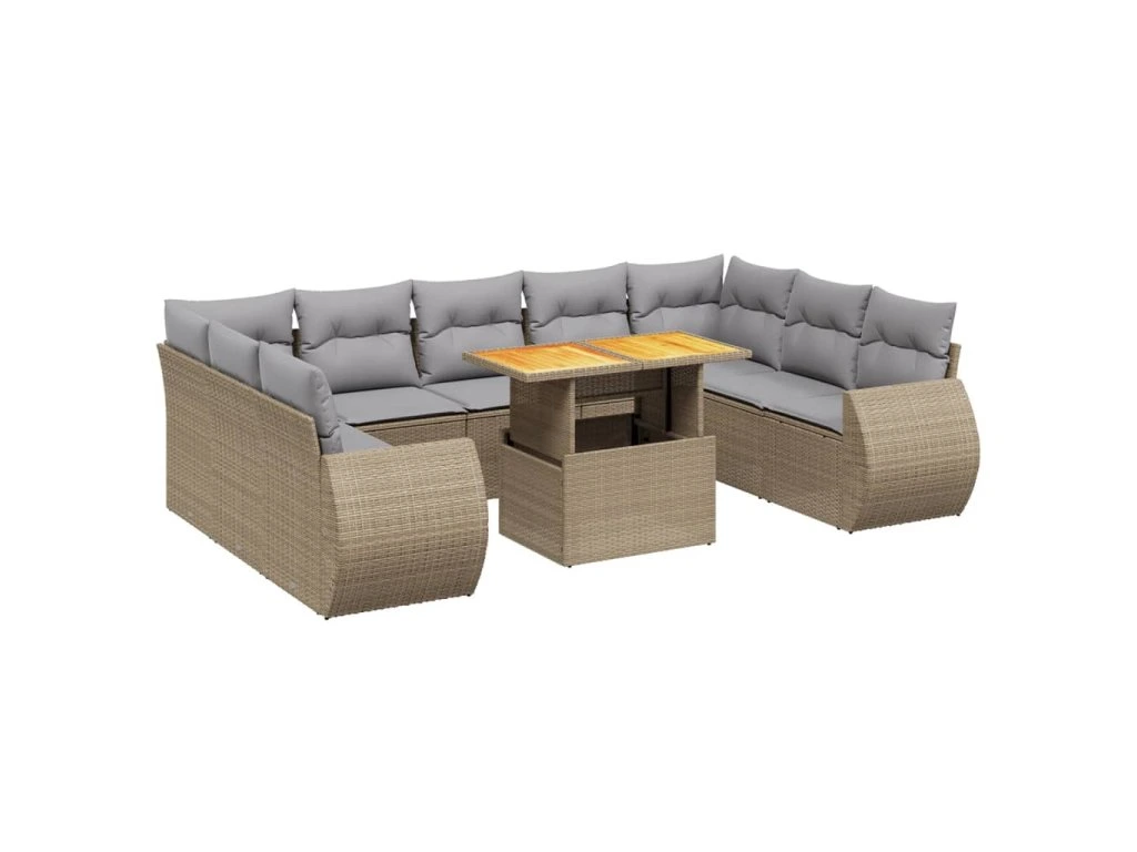 10dílná zahradní sedací souprava s poduškami béžová polyratan 3272340