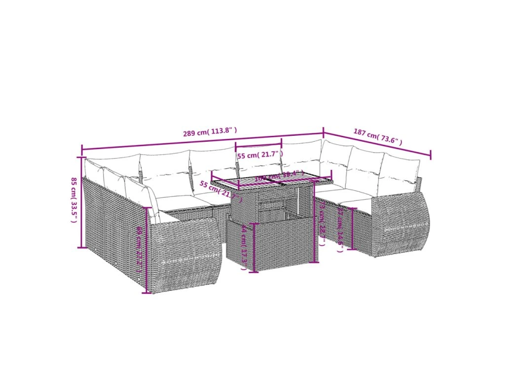 Tato zahradní sedací souprava je dokonalým doplňkem vaší zahrady, terasy nebo dvorku a poskytne vám pohodlné a příjemné místo, kde si můžete povídat s rodinou a přáteli nebo jen tak odpočívat a užívat si pobyt venku.