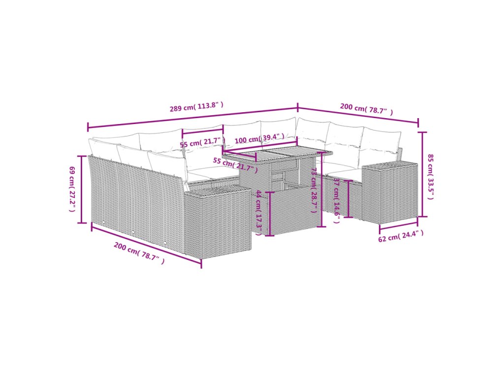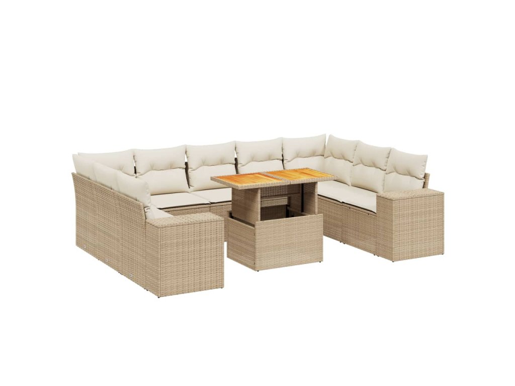 10dílná zahradní sedací souprava s poduškami béžová polyratan 3272780