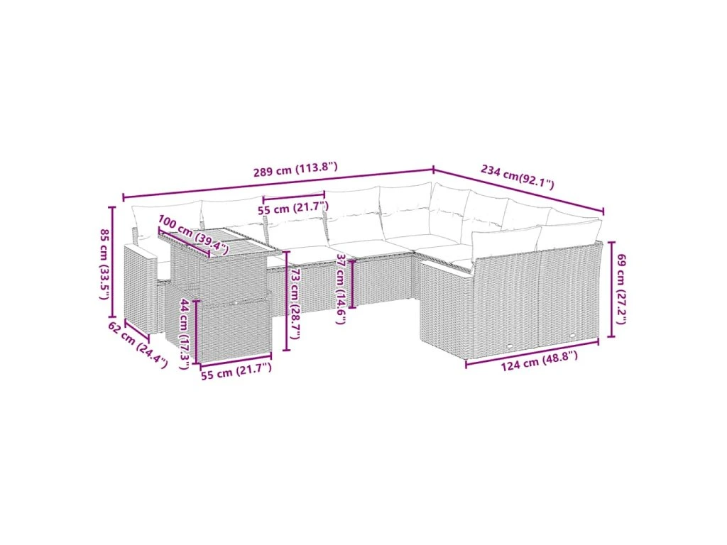 Tato zahradní sedací souprava je dokonalým doplňkem vaší zahrady, terasy nebo dvorku a poskytne vám pohodlné a příjemné místo, kde si můžete povídat s rodinou a přáteli nebo jen tak odpočívat a užívat si pobyt venku.