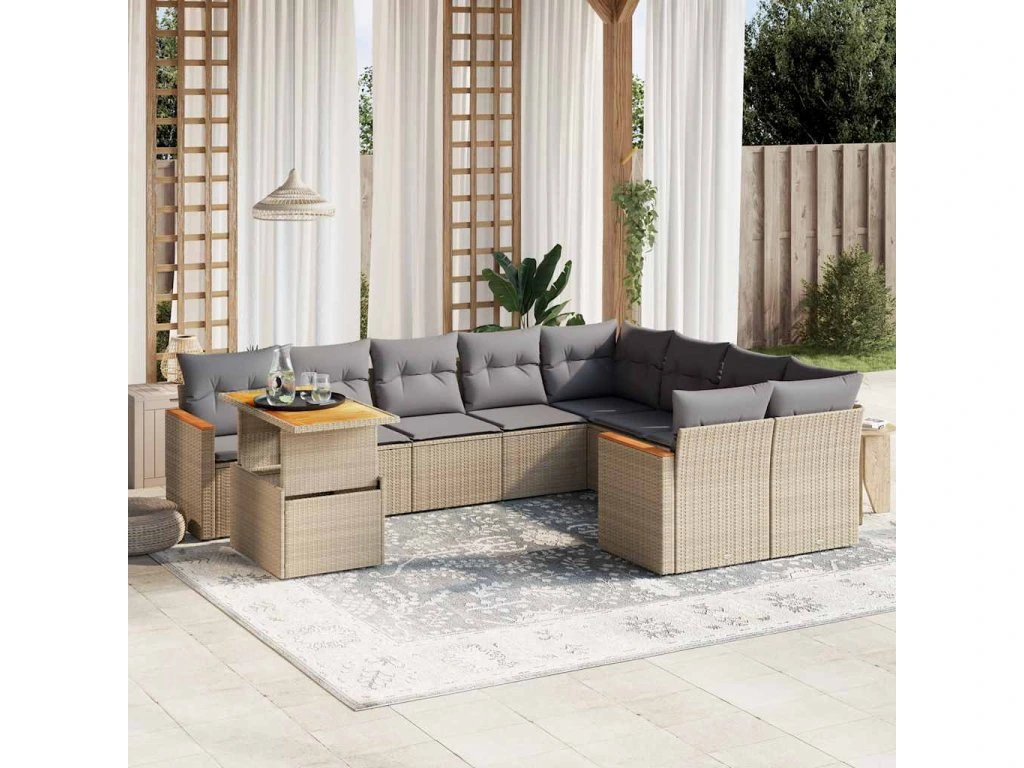 10dílná zahradní sedací souprava s poduškami béžová polyratan 3273243