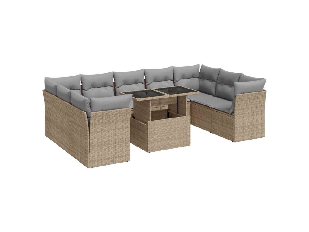 10dílná zahradní sedací souprava s poduškami béžová polyratan 3326220