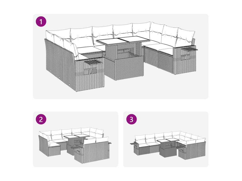 - Úložný prostor s voděodolným vakem: Každý zahradní sedací díl má úložný prostor pod sedákem, který je opatřen voděodolnou vložkou a poslouží vám k ukládání podušek, hraček a dalších věcí. Vnitřní vak má horní kryt a lze jej bezpečně připevnit k sedáku pomocí suchého zipu, což zaručí větší stabilitu.