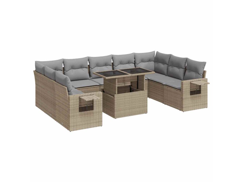 10dílná zahradní sedací souprava s poduškami béžová polyratan 3326540
