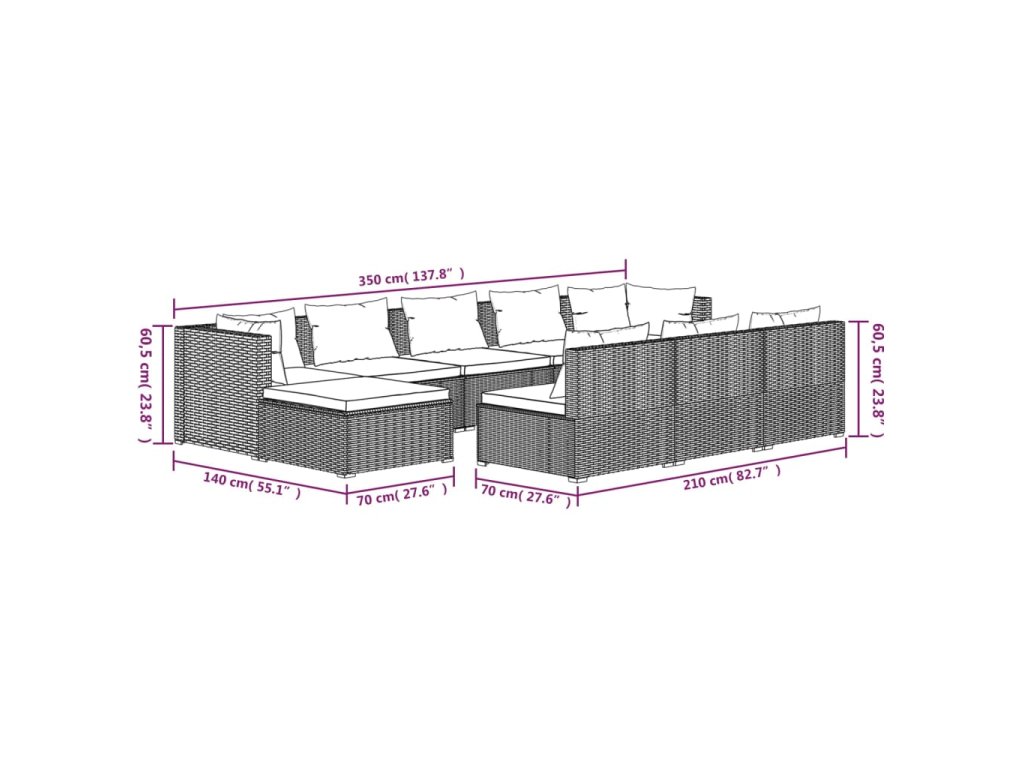 10dílná zahradní sedací souprava s poduškami černá polyratan 3102017