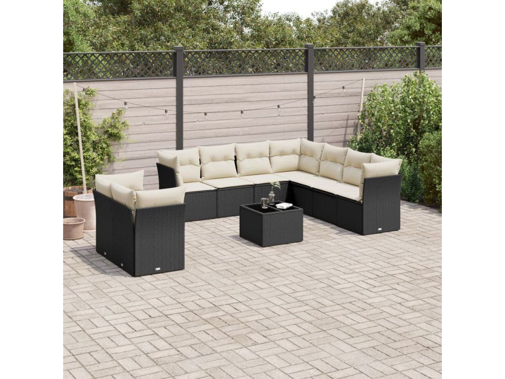 10dílná zahradní sedací souprava s poduškami černá polyratan 3217846