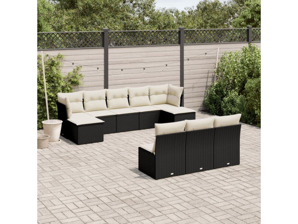 10dílná zahradní sedací souprava s poduškami černá polyratan 3218286