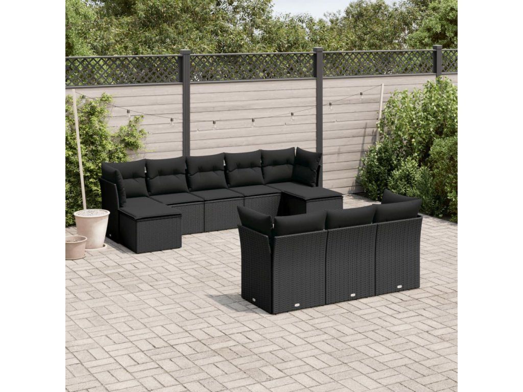 10dílná zahradní sedací souprava s poduškami černá polyratan 3218325