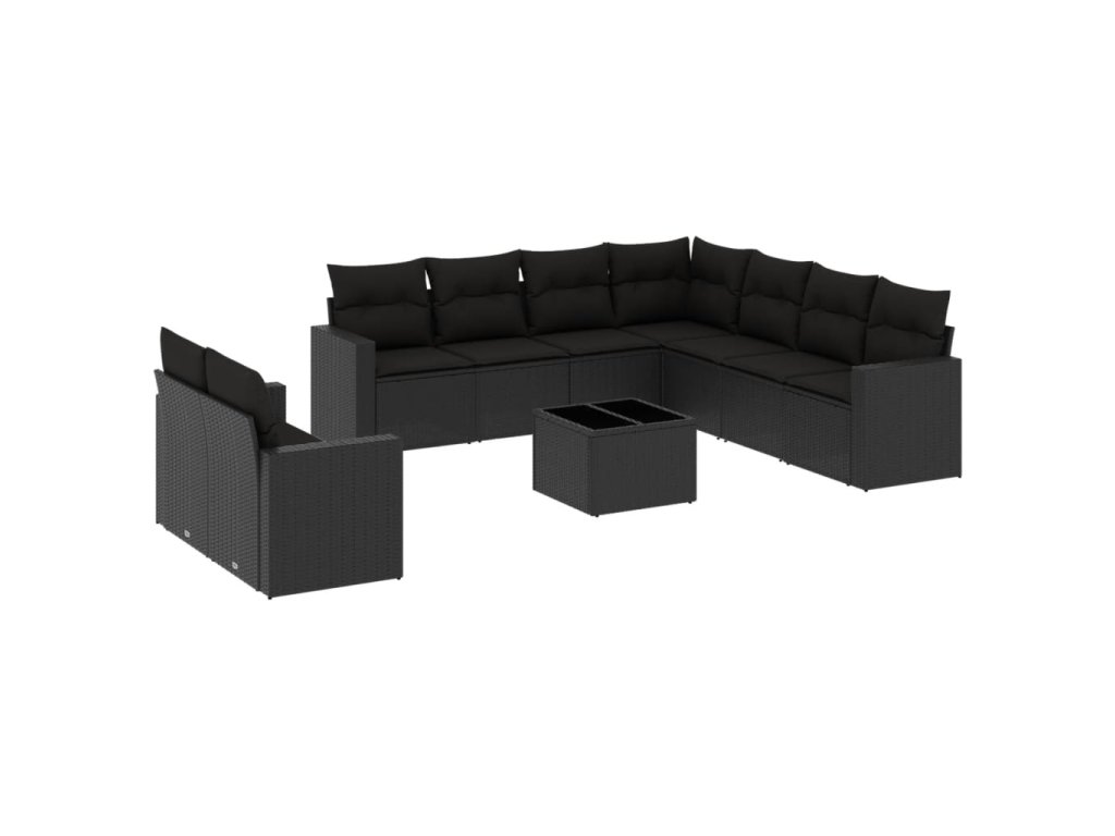 10dílná zahradní sedací souprava s poduškami černá polyratan 3219145