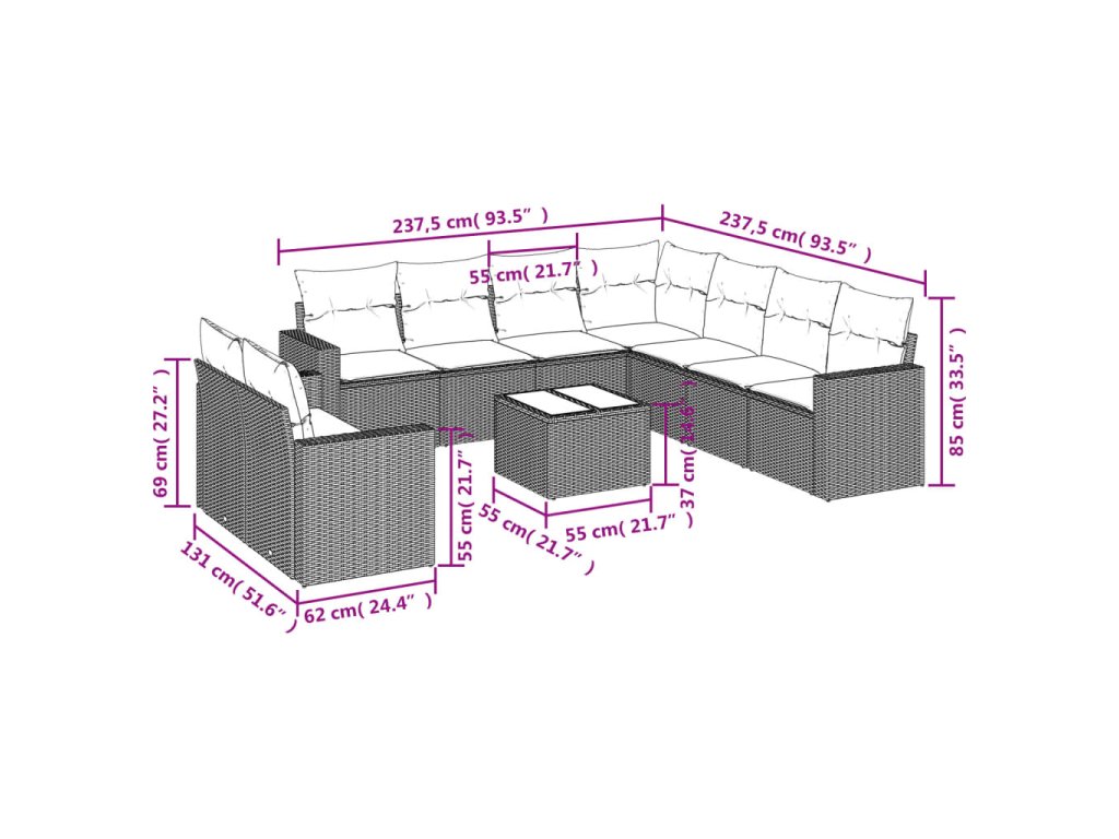 Tato zahradní sedací souprava je dokonalým doplňkem vaší zahrady, terasy nebo dvorku a poskytne vám pohodlné a příjemné místo, kde si můžete povídat s rodinou a přáteli nebo jen tak odpočívat a užívat si pobyt venku.