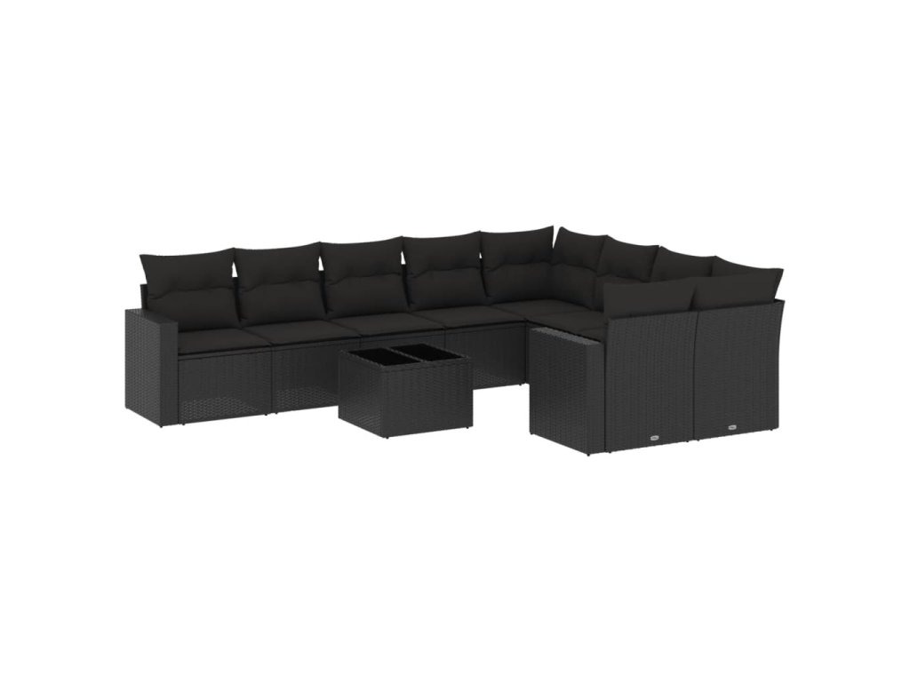 10dílná zahradní sedací souprava s poduškami černá polyratan 3219435